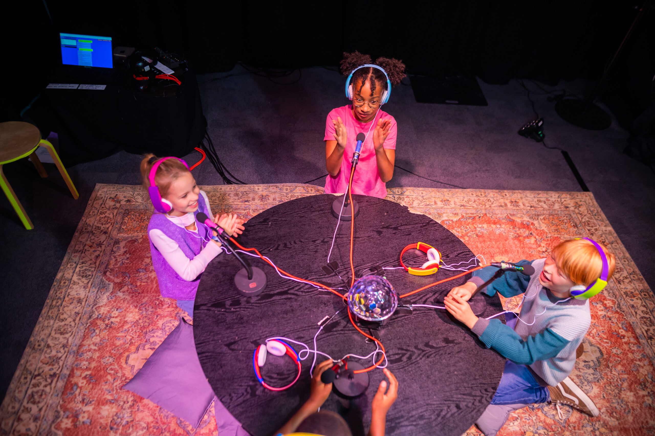 The installation is deliberately screen-free and focuses entirely on sound. Multiple microphones, headphones, and speakers are arranged within a soft, inviting physical environment featuring textiles, lighting, and graphic elements. As interaction occurs solely through listening and speaking, Bakkus is inherently accessible to children with visual impairments, whilst remaining engaging for both groups and individuals. Originally configured to tell stories and process input in Dutch, the system can be adapted for most major languages.
